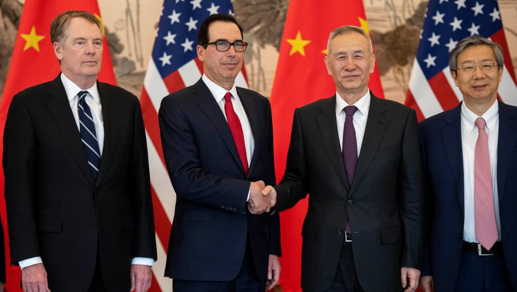 Từ trái sang phải: Đại diện Thương Mại Mỹ Robert Lighthizer, bộ trưởng Tài Chính Mỹ Steven Mnuchin, phó thủ tướng Trung Quốc Lưu Hạc và thống đốc Ngân hàng Trung Quốc Dịch Cương tại Bắc Kinh, ngày 29/03/2019.Nicolas Asfouri/Pool via REUTERS